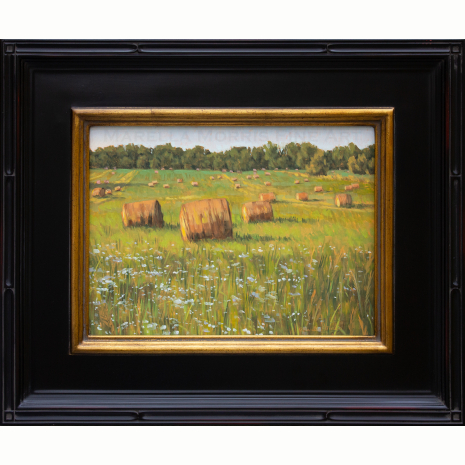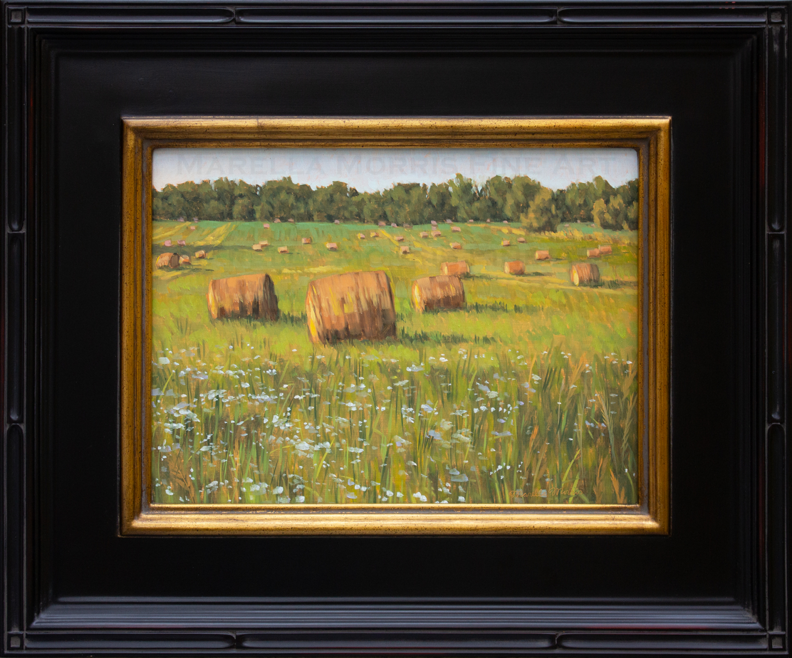 9 x 12 inch oil on gessoed hardboard. Finished in 3 inch dark hardwood frame with gold lip.