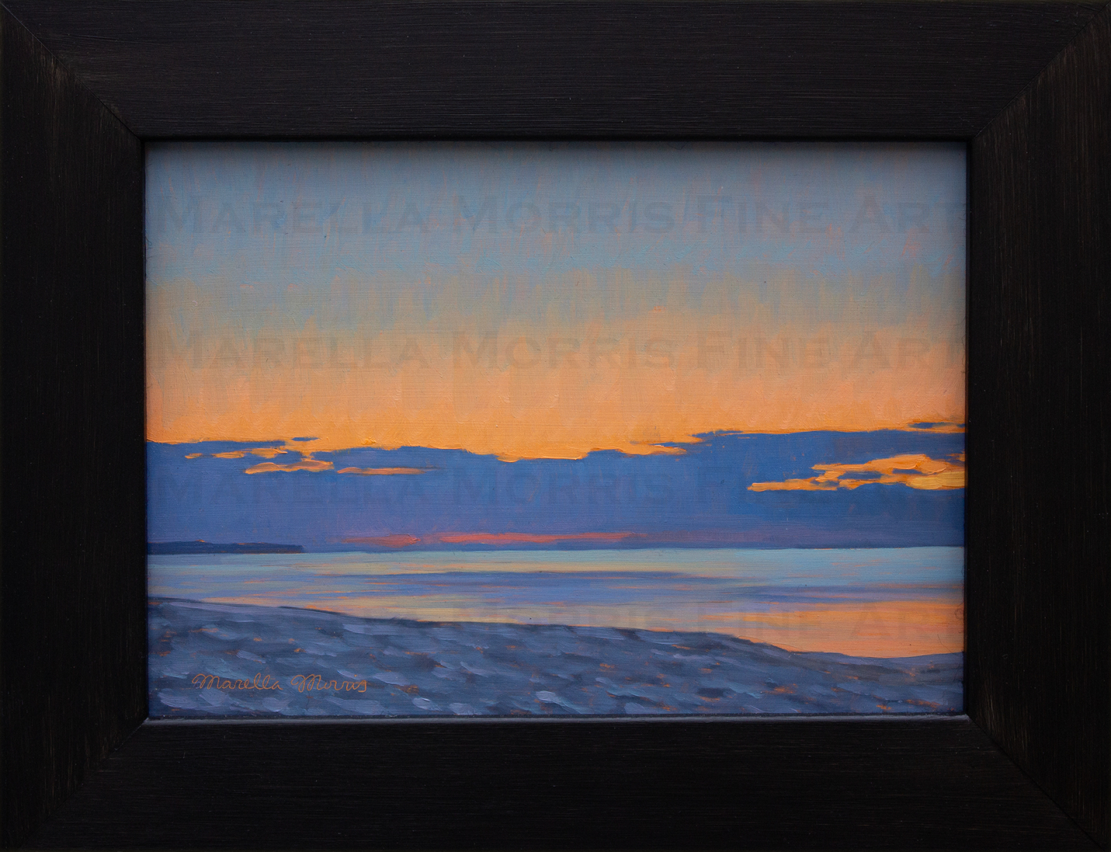 5 x 7 inch oil on gessoed hardboard. Finished in 1.25 inch black frame.