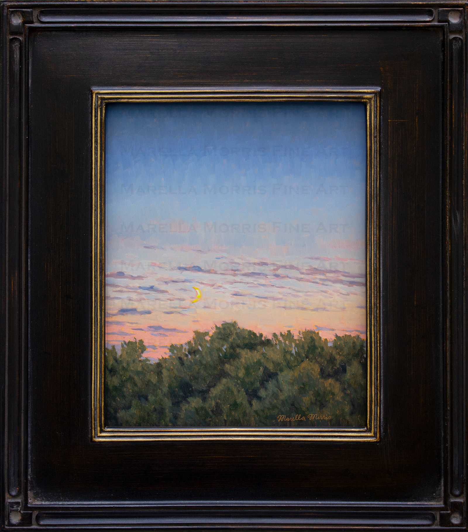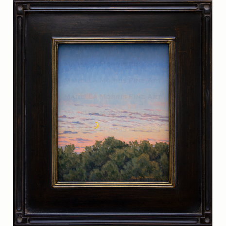 8 x 10 inch oil on gessoed hardboard. Finished in 3 inch dark hardwood frame with gold lip.