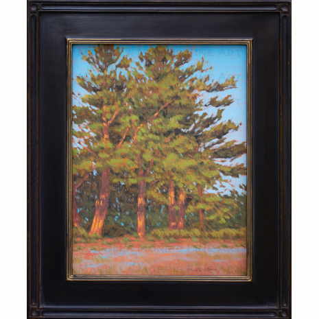16 x 12 inch oil on gessoed hardboard. Finished in 3 inch dark hardwood frame with gold lip.